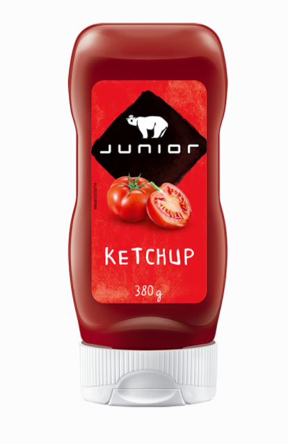 Ketchup Junior – 380g. Caixa com 12 unidades.
